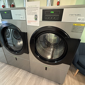 Vi har både 9 kg og 12 kg maskiner, velegnet til dyner og større tæpper.