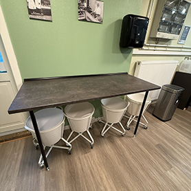 Der kan købes økologisk kaffe eller the til 20 kr. pr. kop.